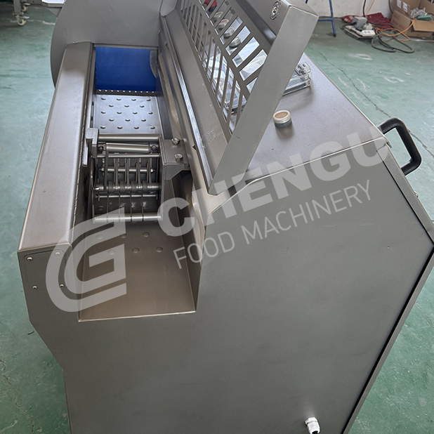 XJT-K250D Fully Automatic Slicing/Cutting Machine is used to cut frozen meat, fish, cheese, bacon, sausages and other raw materials into the desired pieces for users. By replacing the serrated cutter, bone bearing frozen meat can also be cut into blocks or segments, and the cutting thickness can be adjusted by oneself.