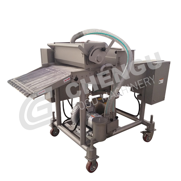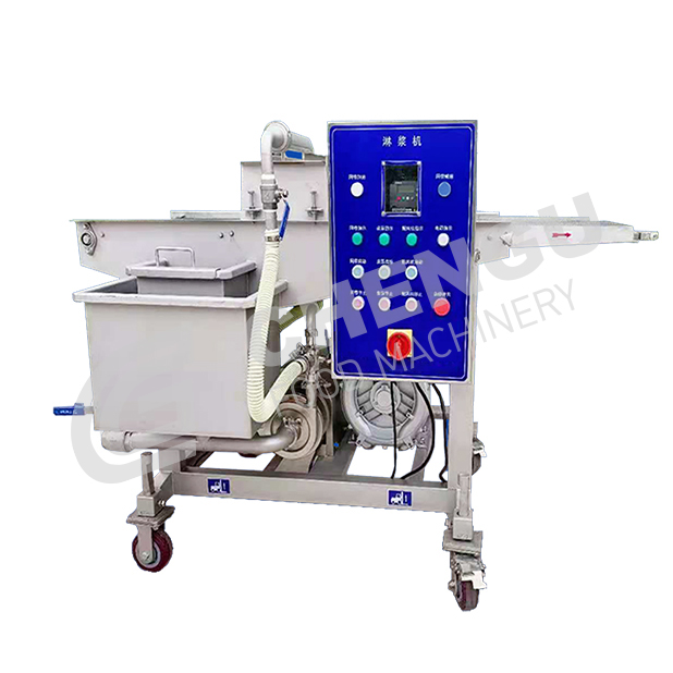 Flour paste dripping machine, also known as waterfall flour paste machine, is used to evenly coat flour paste on chicken, beef, pork, fish, shrimp and other seafood products through the pulp curtain and the bottom bath, which is suitable for the process before crumb wrapping and flour coating;